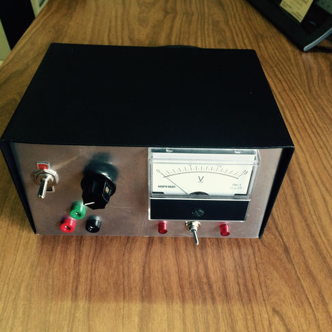 This power supply was designed, built and fabricated as a mechatronics class project. It provides a12v adjustable output and features a custom PCB and an analog display showing either voltage or current.