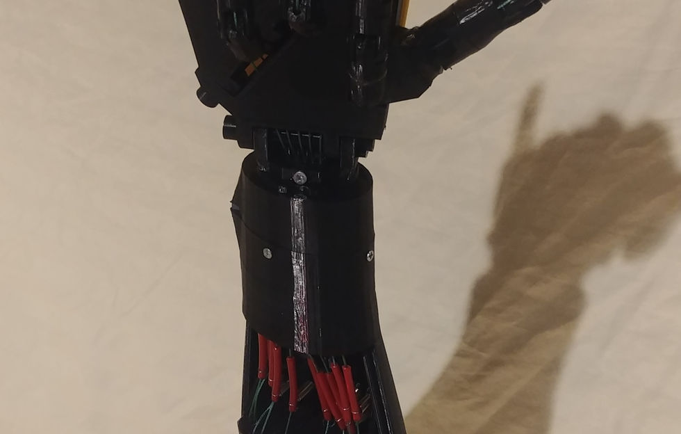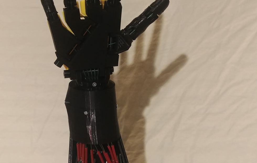 Developed in the summer of 2018, as an honors project, this robotic hand was programmed to perform basic ASL (American Sign Language). This project was programmed with a Python script running on a Raspberry Pi. The code executed on the Raspberry Pi to sent serial data via I2C to a 16 channel Adafruit servo driver, controlling the 6 servos that are linked to the robotic hands' tendons. The physical robotic hand was 3D printed and based off the open-source designs by InMoov.